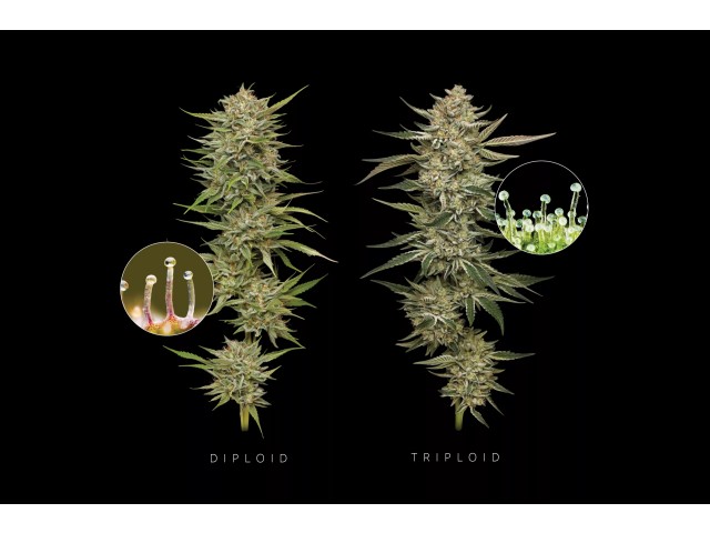 Ta genetska sprememba ima edinstvene prednosti, ki so privlačne tako za komercialne kot za hobi pridelovalce. Prednosti triploidnih semen konoplje Višji donosi – Večji cvetovi in več trihomov vodijo do večjega pridelka na rastlino. Večja moč in potenca – Višje ravni THC in CBD, idealno tako za rekreacijsko kot medicinsko uporabo. Močnejša odpornost na stres – Bolj robustna in bolje odporna na škodljivce, plesen in druge stresne dejavnike. Brez nastajanja semen (sterilne rastline) – Vsa energija je usmerjena v razvoj cvetov in ne v proizvodnjo semen.